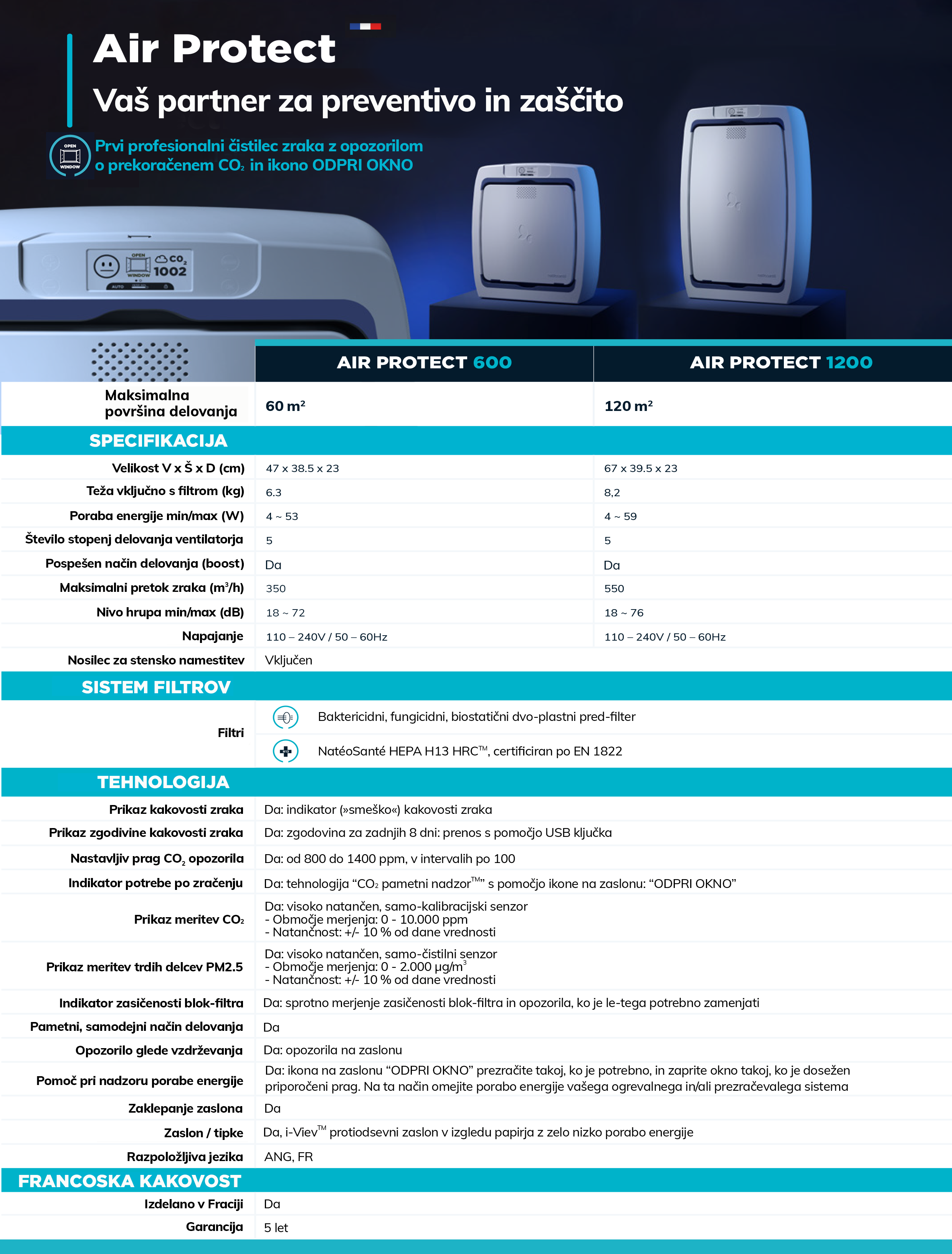• Visoko zmogljiva profesionalna filtracija: blok-filter NatéoSanté HEPA H13 z visoko zadrževalno zmogljivostjo in dvakrat daljšo življenjsko dobo kot standardni HEPA filtri na trgu.