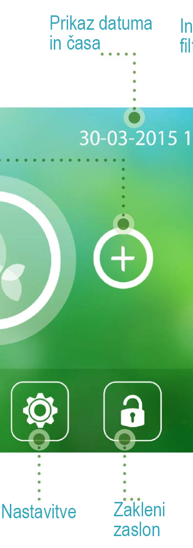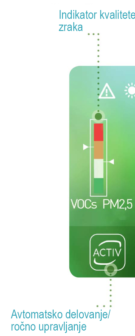 Na zaslonu na dotik za spremljanje kakovost zraka v vašem prostoru v realnem času.